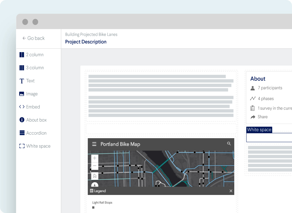 CitizenLab's platform offers multiple ways to consult your community without having to juggle different tools. Whether you need to share information or ask for opinions using a survey, or want to dive deeper into co-creation through dialogue, you can now do it all in one place.